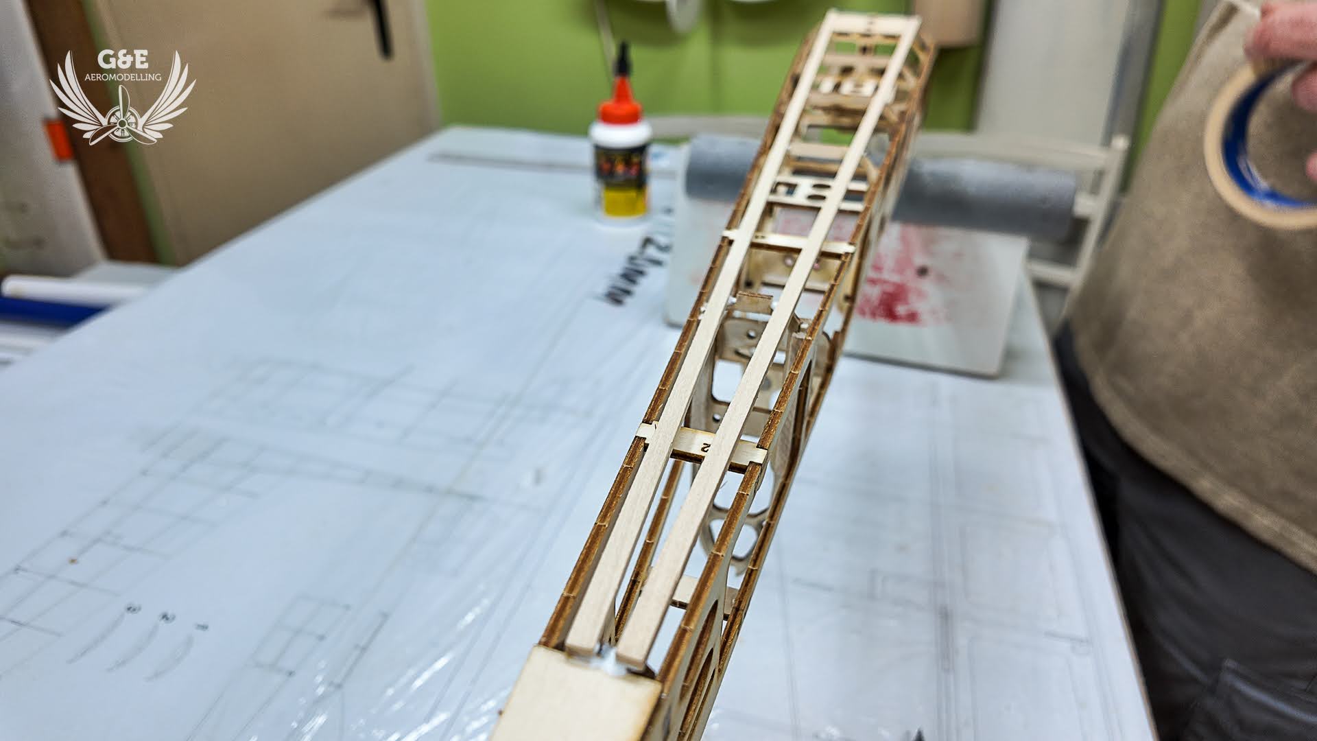 Sa donje strane trupa, dve letve spajaju poprečna rebra. Njih sam ulepio na svoja mesta, a fiksirao sam ih pomoću trake za maskiranje